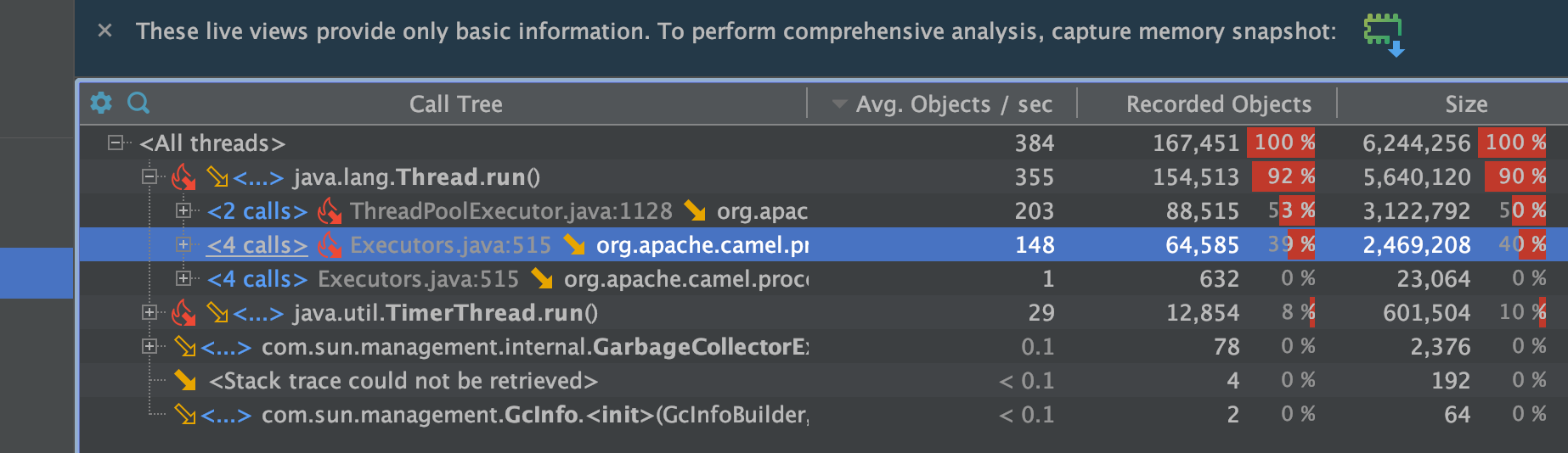 Camel 3.5 Average Object Allocations Per Seconds (Click to enlarge)